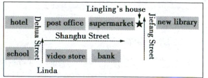 假设你是 Lingling,你想邀请新同学 Linda 来你家参加生日聚会,但她不知道怎么去你家,请你根据下图所示,用英语写一封 60 词左右的电子邮件,告诉她该怎么走。开头和结尾已给出,不计入总词数。