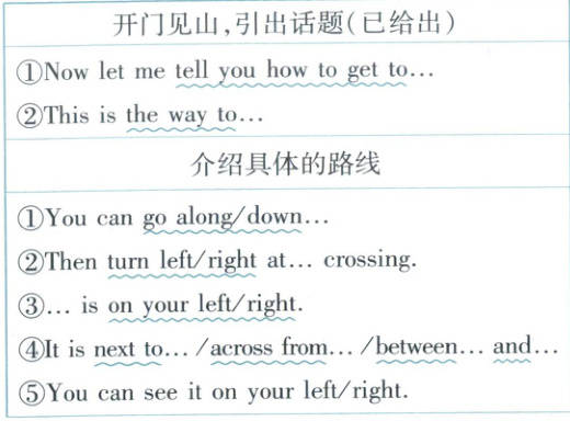 ①go along、turn right 等动词短语也是这一话题中的常见且重要的短语。