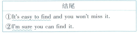 Next Sunday is my birthday. I hope you can come to my birthday party. Now let me tell you how to get to my house. You can go along ①Dehua Street and turn right ①at the first crossing. Then go down Shanghu Street. When you find a bank, turn left. Then go along Jiefang Street for about five minutes. My house is on your left. It is next to ②a big supermarket. You can also see a new library across from my house. It's easy to find it ③and you won't miss it.