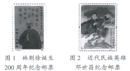 材料:历史主题的纪念邮票是我们丰富历史知识的窗口。通过邮票方式纪念历史上的重要人物、事件和现象,反映了一个民族的情感和价值取向。实验中学八年级(2)班的小明同学是个集邮爱好者,在历史课上他向同学们展示了两张邮票: