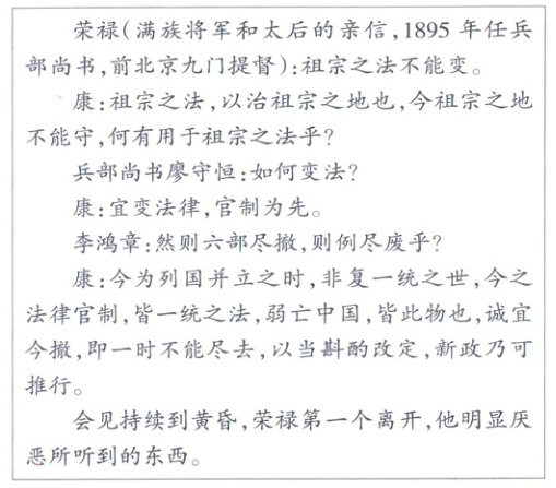 材料:1898年1月24日,康有为第一次正式宣传自己的观点,如他自己所述,会见的精彩部分包含如下对话: