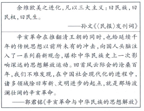 2. ①推翻清王朝统治;②冲击传统思想;③注入崭新观念;④推动思想解放;⑤开启社会现代化诸多领域除旧布新、文明进步(5分)