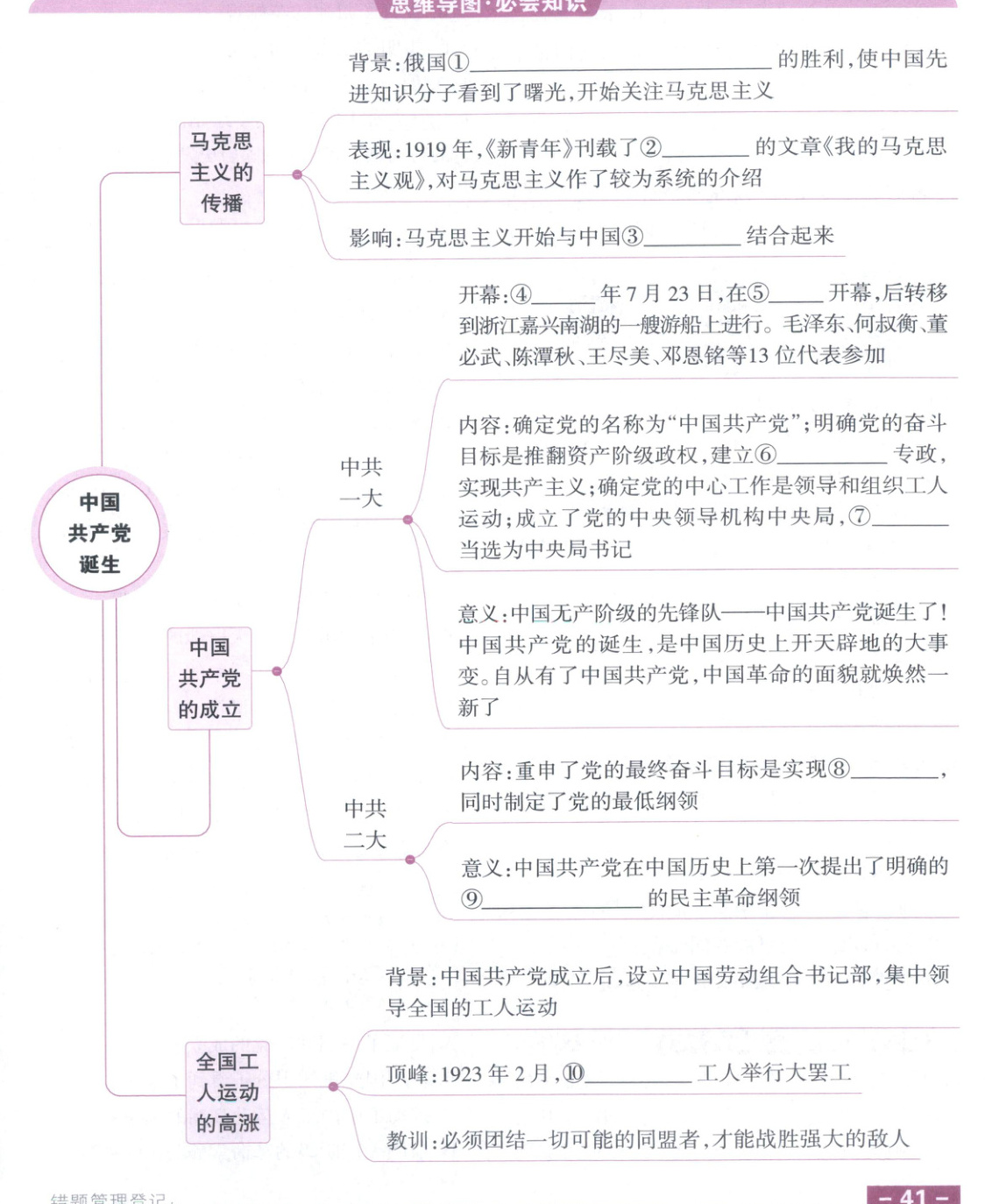①十月社会主义革命 ②李大钊 ③工人运动 ④1921 ⑤上海 ⑥无产阶级 ⑦陈独秀 ⑧共产主义 ⑨反帝反封建 ⑩京汉铁路