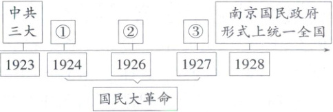 B.①国民党二大 ②南京国民政府成立 ③北伐战争