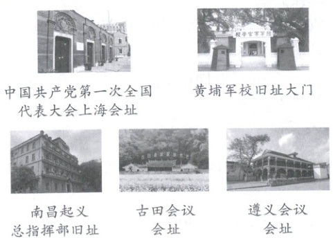 (3)中考新考法提炼主题并阐释 请从以上革命遗址中任选两处,结合所学知识提炼出一个主题,并加以阐释。(要求:主题正确,史论结合,条理清楚)(8 分)