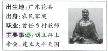 1. 教材P15·插图设题 鸦片战争后,中国社会各阶层不断探索救国方案。如下是小丽同学制作的人物名片,据此可知她研究的人物是(