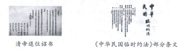 1. “革命派认真吸取前人的历史教训,摒弃了农民阶级的‘皇权主义’,批判了维新派的‘君民共主’……搬来了西方资产阶级民主共和国的政治方案。1912年,他们制定并通过了《中华民国临时约法》。”由此可见《中华民国临时约法》(