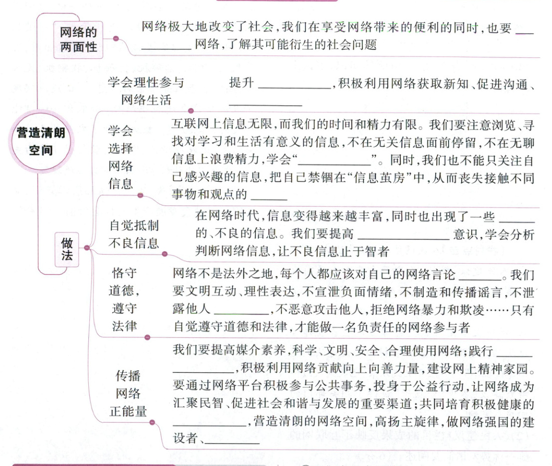 全面认识 媒介素养 完善自我 信息节食 机会 虚假 个人信息保护 负责 隐私 社会主义核心价值观 网络文化 创新者