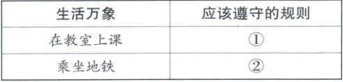 材料一:为了让同学们了解社会规则,维护社会秩序,学习小组的同学们制作了下列表格: