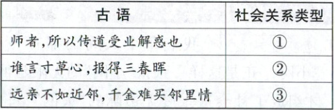(2)请写出上述古语分别体现的社会关系类型。(6 分)