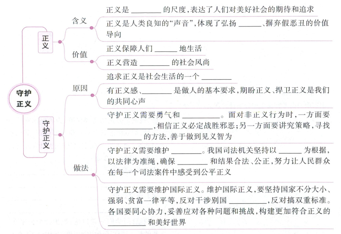 1. 教材 P70 生活观察改编 在讨论什么是正义行为与非正义行为时,同学们用关键词给出了自己对两种行为的描述,以下属于对正义行为描述的是(