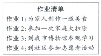 3. 中考新情境作业清单 下表是我市某中学给八年级学生设计的“国庆”假期作业清单中的一项。完成该项作业有助于同学们(
