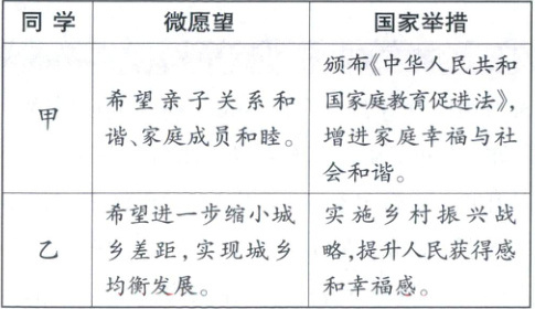 材料一:下表是八年级(3)班两位同学的个人微愿望和国家采取的举措。