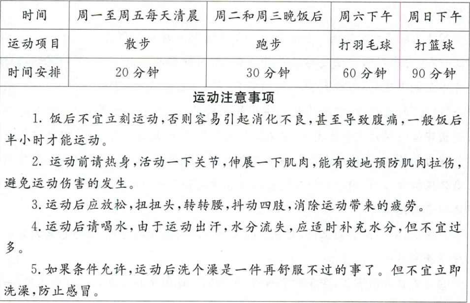 小新每周运动时间安排表