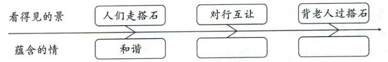 1.2 2.朝相反的方向行进 相向(相对) 3.协调有序 嗒嗒 清波漾漾 人影绰绰 4.谦让过搭石 背老人过搭石 无私奉献 对乡亲们的赞美 5.礼让 尊老
