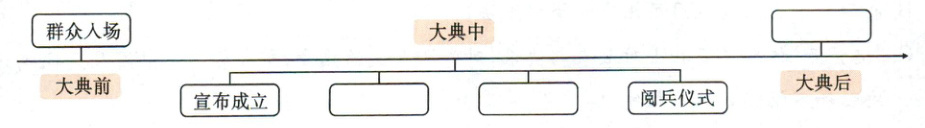 五 回顾课文内容,概括场面,理清开国大典的过程,补全下面的思维导图。