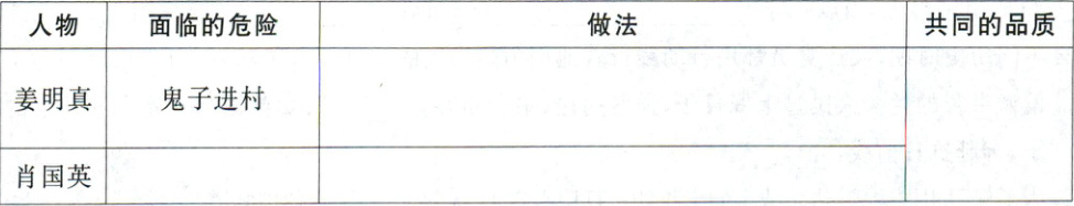 2. 品读文章第③④两段,比较英雄母亲姜明真和肖国英,填一填。