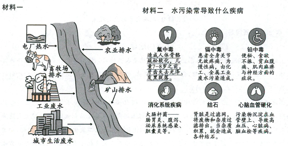 (1)从材料一中可以看出水污染和人类的活动密切相关。()