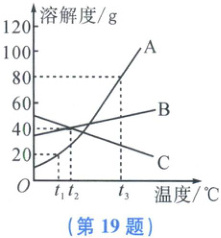 19. (8分)根据如图所示的溶解度曲线图,回答下列问题: