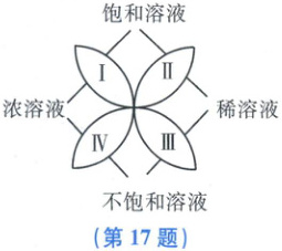 17. (4分)化学中有许多概念既是相对的,又是统一的。如图所示反映了饱和溶液、不饱和溶液、浓溶液以及稀溶液的关系。