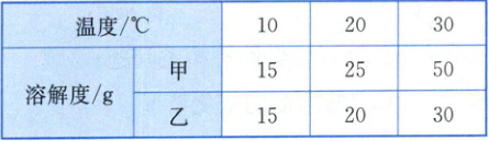 24. (7分)甲、乙两种固体物质的溶解度如下表所示,请回答下列问题: