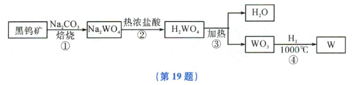 19.(5 分)金属钨(W)可做白炽灯泡的灯丝。用黑钨矿[主要含有 FeWO₄(钨酸亚铁)]制得金属钨(W)的工艺流程如图所示。