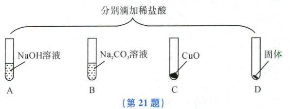 21. (7分)为了验证酸的化学性质,某班同学在实验室进行如图所示的实验,请回答下列问题: