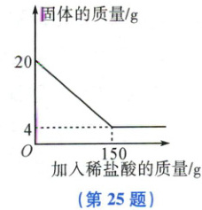 25. (10分)建造“南昌舰”的特种钢材需要用富铁矿石(含铁量高于50%)来冶炼。某实践小组为了测出某地赤铁矿石(主要成分是$Fe_{2}O_{3}$)中的含铁量,进行了如下实验:取20g赤铁矿石样品,逐渐加入稀盐酸,充分反应。实验相关数据如图所示(假设杂质不溶于水,也不与酸反应)。