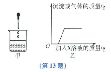 13. 向烧杯中逐滴加入X溶液至过量(如图甲所示),生成沉淀或气体的质量与加入X溶液的质量关系如图乙所示的是(