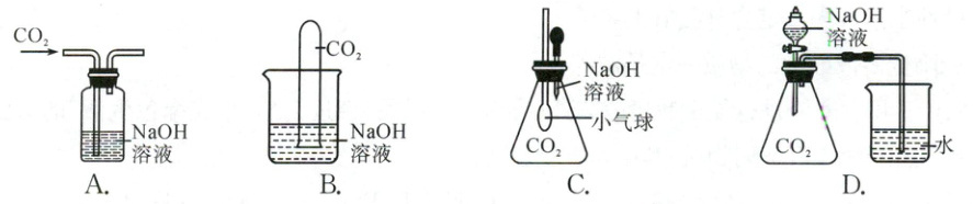 8. 下列探究“$CO_{2}$与$NaOH$溶液反应”的实验装置中,不能观察到明显现象的是(装置的气密性均良好)(