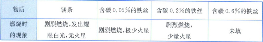 有关,表中未填的一项你估计应当是剧烈燃烧,火星四射