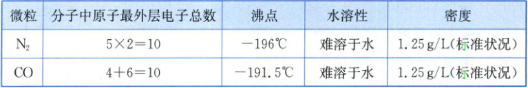 15. 定义:分子或原子团的原子总数相同,最外层电子总数也相同,这样的微粒互称为等电子体。等电子体的结构和物理性质非常相似,如 $N_{2}$ 和 $CO$ 是等电子体,如下表所示:
