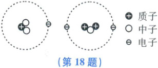 14.B [解析]氢原子核只含有质子,不含有中子,A错误;普通氢分子有2个原子核,这种氢粒子由3个氢原子核和2个电子构成,比一个普通氢分子多一个原子核,B正确;根据这种氢粒子由3个氢原子核和2个电子构成,可知这种氢粒子可表示为$H_3^+$,C错误;$H_3^+$和$H_2$的构成不同,则它们的化学性质也不同,D错误。