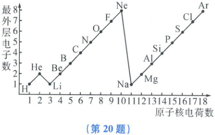 20. (6 分)如图所示为 1~18 号元素原子最外层电子数与原子核电荷数的关系图,请回答下列问题:
