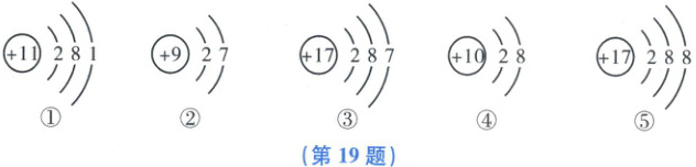 22. (6 分)对于原子的内部结构的认识,经过科学家不断努力后发现,原子的核外电子不仅在一定的轨道上运动,而且是在不同层次的轨道上运动的。为了研究和学习的方便,人们常用如图所示的模型来表示原子核外电子的分层排布,这(第 22 题)种模型称为原子结构示意图。请分析并回答问题: