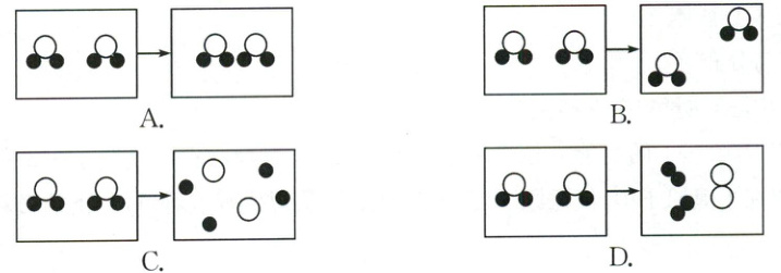 7.C 【解析】过氧化氢分解的过程:过氧化氢分子分解成氢原子和氧原子,然后每两个氢原子和一个氧原子重新组合成水分子,剩余的氧原子中,每两个氧原子重新组合成氧分子;而在这一过程中,氢原子、氧原子是没有变化的。