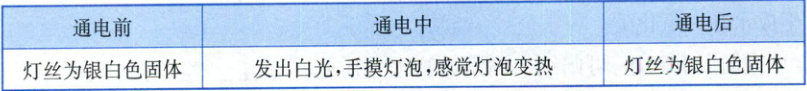分析:通电前后,钨丝本身没有发生变化,灯泡通电发光、放热属于