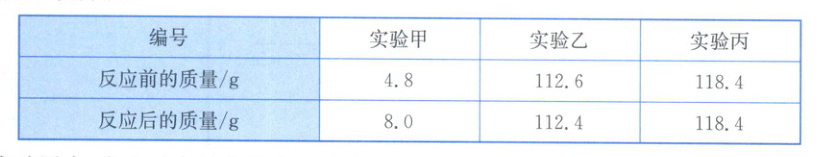 。(3)这三个实验中,实验丙反映了反应物与生成物之间的质量关系。请从分子、原子的角度解释反应前后质量相等的原因:
