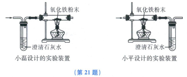 21.(8 分)老师给小平和小磊各一瓶一样的气体,让他们对气体的成分进行探究,气体可能是 CO 和 $CO_{2}$中的一种或是两者的混合物。