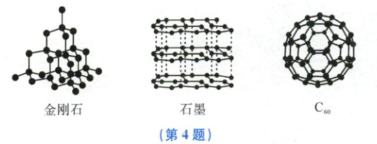 4. 如图所示为金刚石、石墨和$C_{60}$的结构模型图,图中小球代表碳原子。下列说法中,不正确的是(