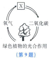 9. 自然界中二氧化碳的循环如图所示,在X过程中关于氧气的作用,下列说法不合理的是(