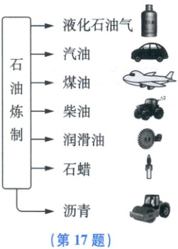 17. (6 分)石油是工业的“血液”,如图所示为石油炼制的部分产品和主要用途,请回答下列问题: