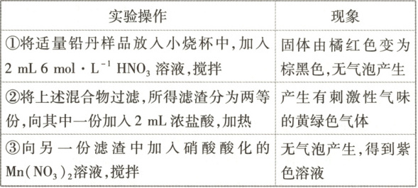 原创预测 在电影《哪吒2》构建的奇幻世界里,天元鼎是炼丹的重要法器,影片中的人物用其炼制能提升仙力的丹药。铅丹(${Pb_{3}O_{4}}$)是中国古代炼丹术中常出现的角色,某化学小组对铅丹产生了浓厚的兴趣,并对铅丹的一些性质进行了实验探究。