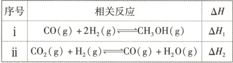 (1) 结合盖斯定律可知,目标反应 $ = $ 反应ⅰ $ + $ 反应ⅱ,则反应 $ {CO_{2}(g) + 3H_{2}(g){<=>[][]}CH_{3}OH(g) + H_{2}O(g)} $ 的焓变 $ \Delta H = \Delta H_{1} + \Delta H_{2} $。