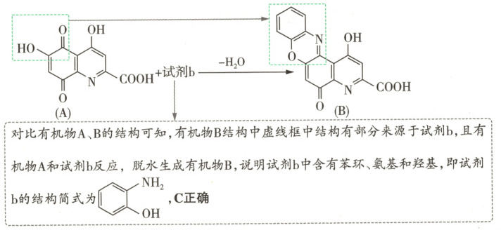 根据有机物A的结构简式可知,该有机物的分子式为C₁₀H₅NO₆,A正确。有机物B中碳原子均连有3个σ键和1个π键,故所有碳原子的杂化方式均为sp²,B正确。