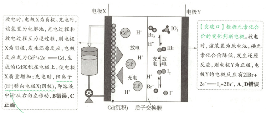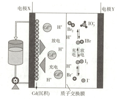 D.放电时,电极 $ {Y} $ 的反应有 $ {I_{2} + 2Br^{-} - 2e^{-} \xlongequal{} 2IBr} $