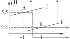 将$B(1,2.4)$代入$\lg K_{a1}({H_{3}PO_{3}})=\lg \dfrac{c({H_{2}PO^{-}_{3}})}{c({H_{3}PO_{3}})}-{pH}$,可得$K_{a1}({H_{3}PO_{3}})=10^{-1.4}$,将$A(-1,5.5)$代入$\lg K_{a2}({H_{3}PO_{3}})=\lg \dfrac{c({HPO^{2-}_{3}})}{c({H_{2}PO^{-}_{3}})}-{pH}$,可得$K_{a2}({H_{3}PO_{3}})=10^{-6.5}$,A正确