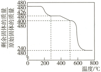 原创预测 化合物$[YX_{4}R_{3}(WZ_{4})_{2}(ZX)_{6}](M = 480g·mol^{-1})$用途广泛,其中一种用途是治理酸性废水。其中$X$、$Y$、$Z$、$W$为原子序数依次增大的短周期主族元素,且$Z$、$W$同主族。该化合物的热重曲线如图所示,在$300~500℃$时分解产生的气体$q$能使干燥的红色石蕊试纸变蓝。下列说法正确的是
