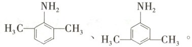 (2) 化合物 D 的同分异构体 E 的分子式为 C₈H₁₁N,含有苯环,呈碱性说明其中含有氨基,在核磁共振氢谱图上只有 4 组峰说明结构高度对称,则还含有 2 个甲基,且位于苯环两侧的对称位置,故 E 的结构可能为、。