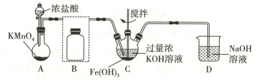 原创预测 高铁酸钾$(K_{2}FeO_{4})$是一种高效净水剂。已知:$K_{2}FeO_{4}$为紫色固体,易溶于水,微溶于浓$KOH$溶液,在酸性或中性溶液中不稳定,在$0\sim5^{\circ}C$的强碱性溶液中较稳定。某实验小组欲制备高铁酸钾并探究其性质。